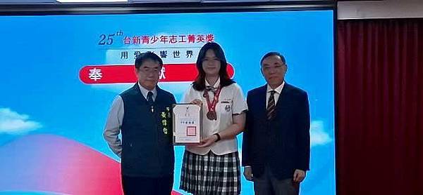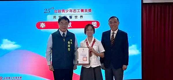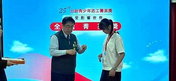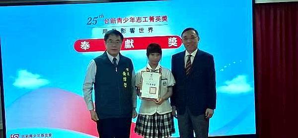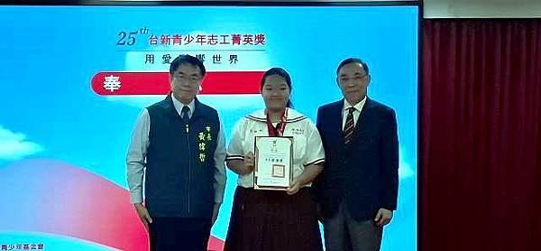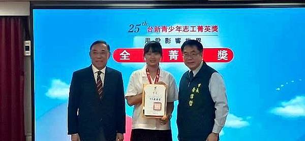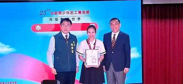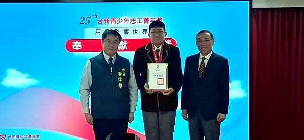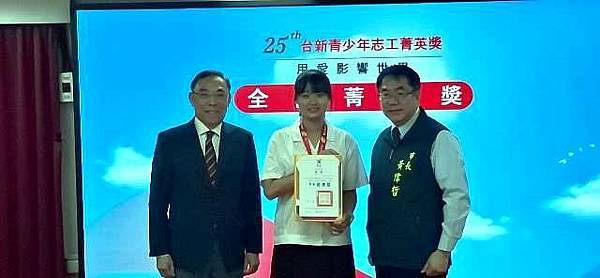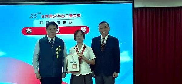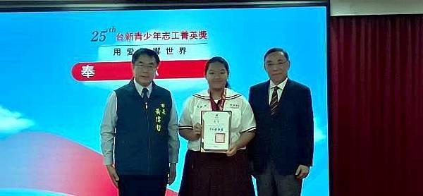 「台新青少年志工菁英奬」為一項國際性的表揚活動,台灣今年為第25屆舉辦,目的為肯定及鼓勵在志願服務方面表現傑出的青少年。今年台南有9位同學獲得獎勵肯定,參與包括醫療防災、偏鄉教育、文化傳承等多元領域服務工作。