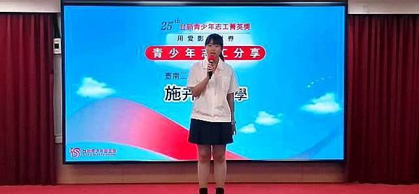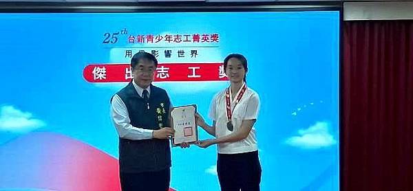 在得獎學生中,台南二中施卉軒榮獲全國僅8名的「全國菁英獎」,因幼時受醫院志工關懷而萌生服務社會的動機,自小學五年級起便投入志工行列,參與物資整理、零錢箱回收等工作,並透過「雲志工」形式陪伴特殊境遇者;榮獲「傑出志工獎」的台南一中進修部學生郭宥妡,則以自身療癒經驗為出發點,自學韓文並設計課程,成立「星火鄉伴」團隊,深入偏鄉推動教育服務,點燃孩童學習熱情,並參與「台語巢」計畫推廣本土語言。