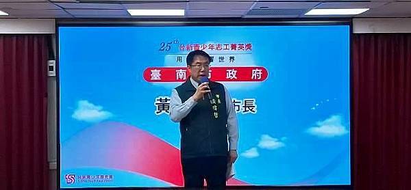 【柿子日報記者李玲/台南報導】台南市長黃偉哲今(15)日接見表揚第25屆「台新青少年志工菁英獎」獲獎學生,本屆台南市有9位學生志工脫穎而出,分別榮獲「全國菁英獎」、「傑出志工獎」及「奉獻獎」。黃偉哲肯定青少年志工們願意在非常年輕的時期就投入志工服務,讓社會更美好,也感謝台新青少年基金會,讓青少年志工的付出能夠被看見。