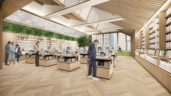 「玲廊滿藝」以書畫相映,「書畫博客」打造藝術作品與實體書店共生的獨特空間;「閱讀綠境」以光影與綠意為靈感,為愛書人營造一處身心放鬆的都會綠洲,猶如徜徉在大地的懷抱中,享受閱讀;「圖像穿廊」匯集漫畫、繪本、圖文類書籍,呼應閱讀視覺化的人文走廊;「數位閱讀體驗區」整合虛實科技,建構電子書與有聲書的沉浸式體驗專區,邀請讀者享受閱聽新風潮;「數位書櫃、AI互動」串連博客來線上的書海資源,提供最新暢銷書榜,創造智慧選書與閱讀互動的全新體驗。