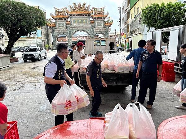 9日下午,慈濟宮再送出晚餐便當給學甲區宅港里500個、平和里150個、北門區三寮灣300個;此外,董事長王文宗個人也捐出1500個晚餐便當給將軍區、七股區、北門區的災區各500個。