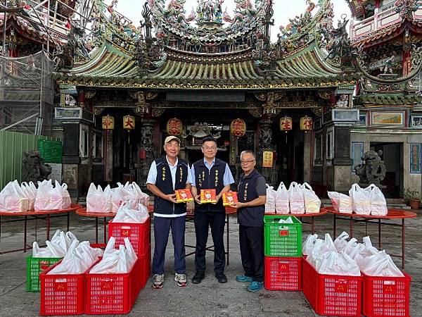9日上午11時,慈濟宮準備900個熱騰騰台南正忠便當及數十箱礦泉水,由董事長王文宗、副董事長劉萬教代表捐給三慶里長郭壬貴,由他發送給當地居民,以解燃眉之急。