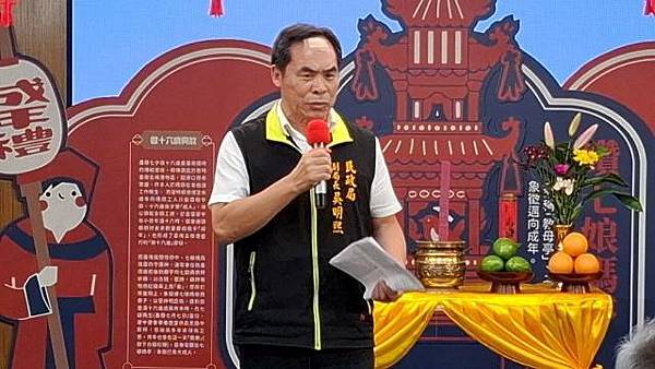 市府今(21)日於永華市政中心舉辦記者會,由民政局副局長吳明熙代表市長黃偉哲主持,他表示台南有豐富文化資產,特有的「16歲成年禮」,象徵「轉大人」的開始,期望經過儀式洗禮,讓孩子了解要開始為自己、家庭與社會負起責任。今年也是第一次邀集六間宮廟舉辦典禮的宮廟舉行聯合記者會,各廟將帶來各有特色及意義的成年禮,歡迎民眾多多參與。