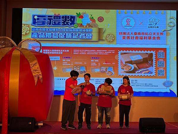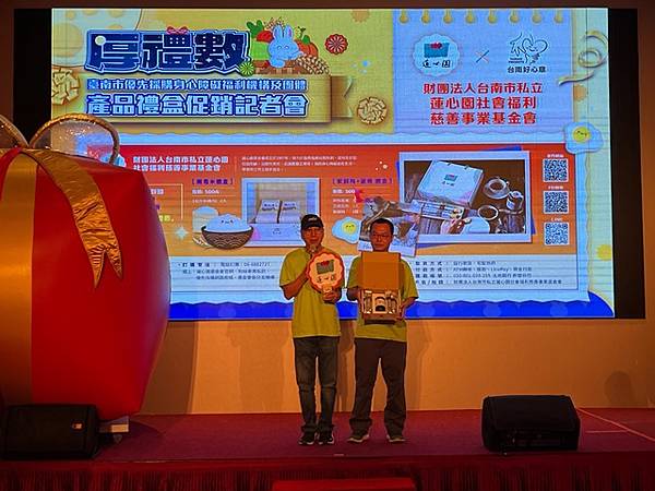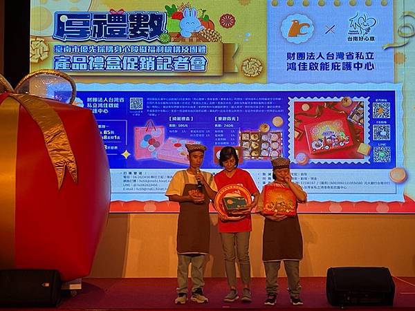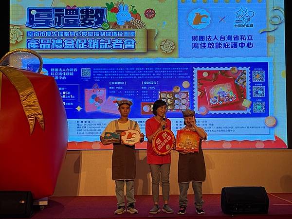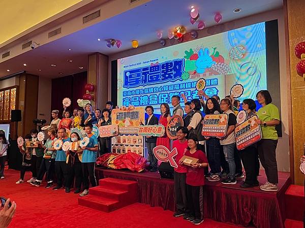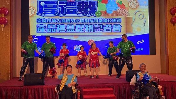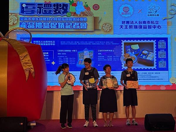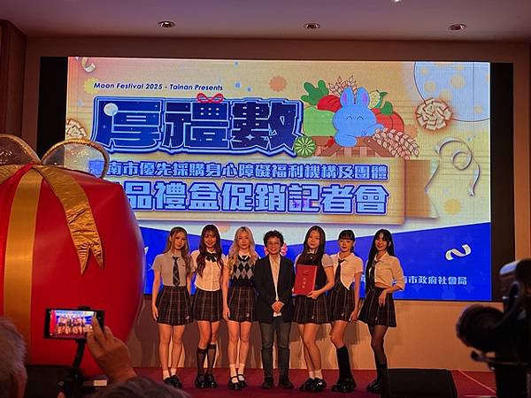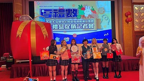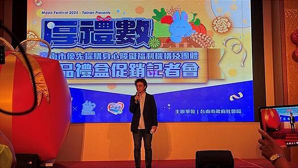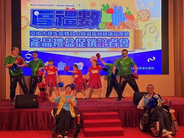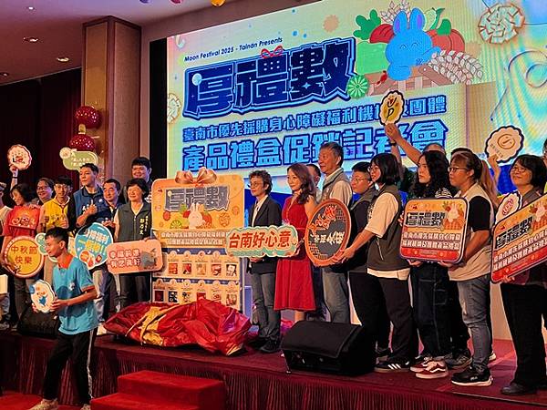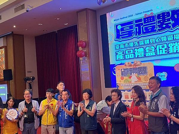 今日活動以「厚禮數-台南好心意 秋節好禮數」為主題,除有11家廠商推出以秋節送禮為主題的禮盒外,也邀請3家優先採購廠商與2家女性微型創業者共同設攤介紹來自不同性別、障礙程度者多元豐富的手作品,選擇由身心障礙朋友親手製作的產品作為節慶贈禮,是台南人獨有的溫暖與細膩,讓禮盒不只是好看、好吃,更充滿生命故事與希望力量。「SOLOMOON紫月光」也特別到場進行公益演出,並由其經紀公司率先選購身障者製作的中秋禮盒20份,以行動支持本市身心障礙團體並帶動台下各公會、企業行業選購。台南市工商發展投資策進會陳宗明總幹事以郭綜合醫院志工大隊名義,訂購220份。台南市總工業會也現場捐款新台幣12萬元,為這場中秋送禮活動增添溫暖與感動。