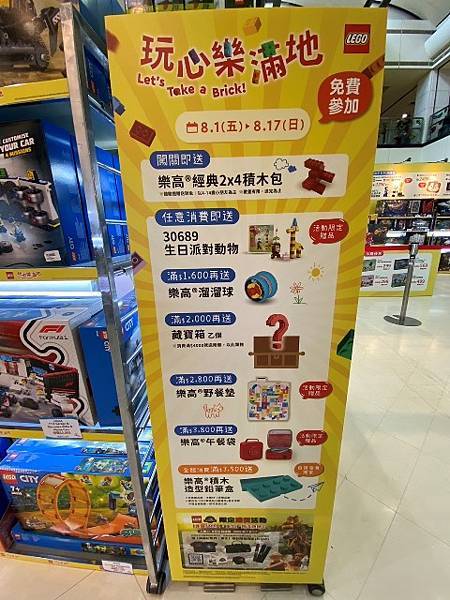 暑假期間多項限定買贈好禮 陪伴大小朋友度過最快樂暑假時光除了有趣的互動體驗,樂高®同步於活動期間推出多項限定好禮,即日起至8月17日止,於新光三越台南新天地「玩心樂滿地」活動快閃店內任意消費即可獲得「30689 生日派對動物」活動期間限定贈品;滿2,000元可獲得「藏寶箱」;滿2,800元可獲得「樂高®野餐墊」;買滿3,800再送「樂高®午餐袋」;憑新光三越會員卡全館消費(含樂高®活動快閃店發票)買滿3,500元可獲得「樂高®積木造型鉛筆盒」。另外,結合全國指定店舖買贈活動,任意消費樂高®盒組滿 1,600 元即可獲得「樂高®溜溜球」。