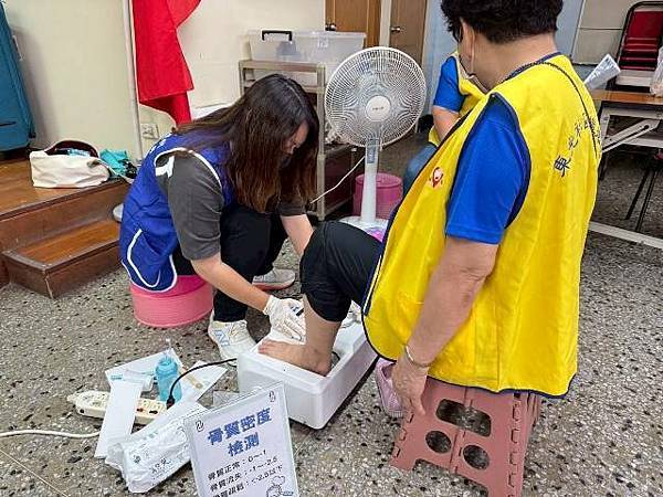 本次健康篩檢項目豐富,包含身高體重、血壓、血糖、骨質密度、尿蛋白、尿糖、尿潛血等檢查,特別加碼針對糖尿病患者進行AI眼底攝影,協助早期發現視網膜病變問題。現場更邀請新樓醫院社區醫學部部長紀鈞齡醫師親自說明檢查報告內容,讓民眾深入了解檢查結果與健康管理重點。