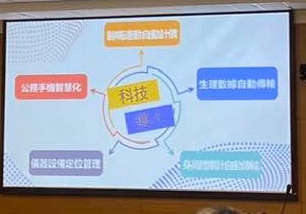 第五,公務手機智慧化全面推行,護理師配置人手一機,整合業務常用APP,支援點班、查詢病人資訊和同意書簽署等功能,強化跨單位聯繫與資訊流通,提升臨床作業效率與即時性。