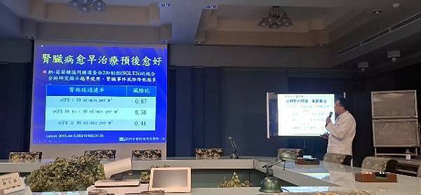 不過慢性腎臟病不等於末期腎病變,也不代表以後一定需要洗腎。慢性腎臟病是可以預防及治療的疾病,而且愈早介入及治療,預後愈好。目前腎臟病的新藥鈉-葡萄糖協同轉運蛋白2抑制劑(SGLT2i)的研究也顯示越早使用,腎臟事件風險降低越多,延遲透析的時間越長。但是慢性腎臟病是個沉默的殺手,初期常沒有症狀,所以需要篩檢,才能早期診斷,早期治療,除了適當的藥物之外,還需飲食控制。