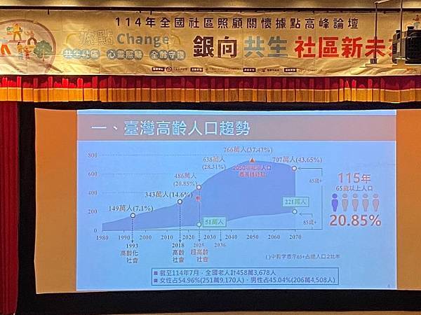【柿子日報記者李玲/台南報導】台南市老年人口比例至114年7月底已突破20%邁入超高齡社會,全國各社區照顧關懷據點、中央及地方社政主管機關今(28)日齊聚國立成功大學成杏廳參與「114年全國社區照顧關懷據點高峰論壇」。