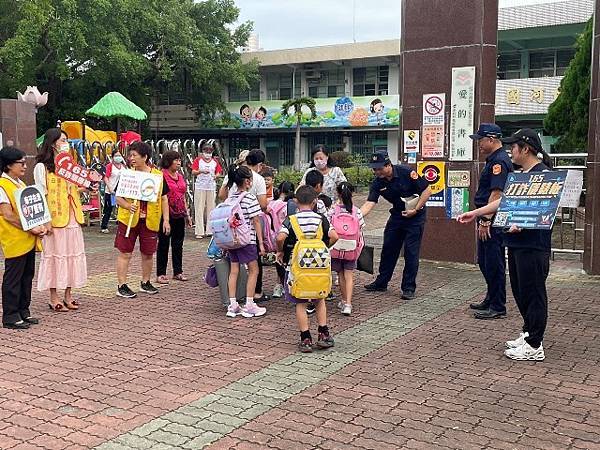白河分局分局長陳志埕祝福學童開學快樂,並宣導婦幼安全、交通安全、人口販運、反詐騙及反毒等犯罪預防觀念,希望與校方、家長及社區力量共同結合,打造一個讓學童安全無虞,快樂學習的成長環境。