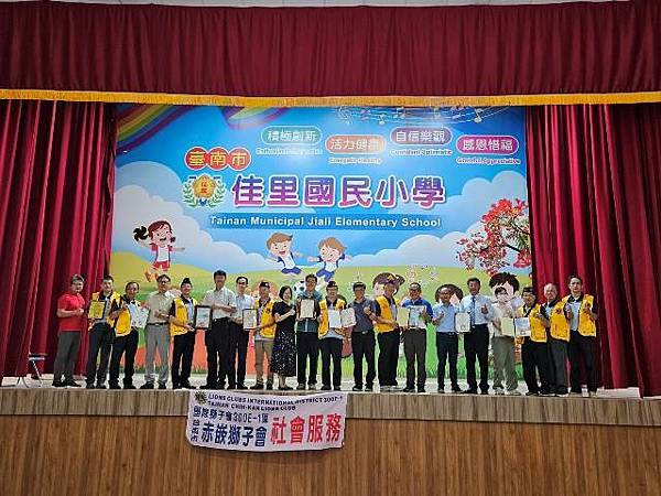 市府教育局主任秘書陳宗陽、佳里國小校長王聖欽都到場觀禮,3區18 所國小校長也回贈感謝狀給赤嵌獅子會。