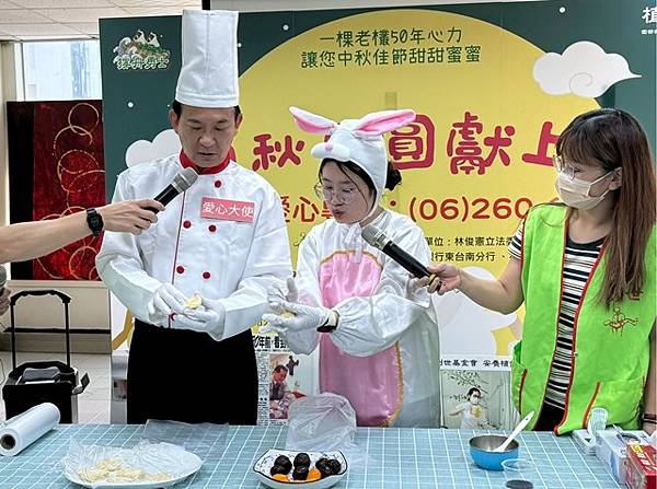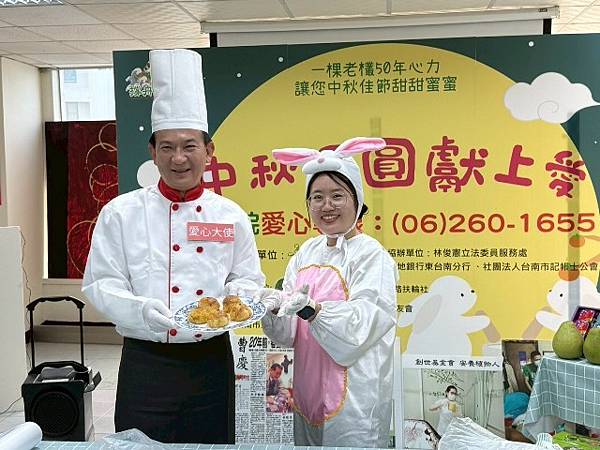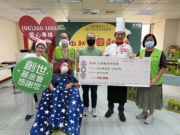 【柿子日報記者李玲/台南報導】中秋佳節將至,9/02(二)林俊憲立委化身型男大主廚,擔任創世中秋義賣大使,攜手糕點老師現場製作月餅,提前陪伴因車禍成植物人的阿昌及家人同慶中秋。創世基金會台南分院長年照顧著 60 位清寒家庭植物人,今年因不景氣面臨龐大經費壓力,急需捐款及義賣補足經費短缺。立法委員林俊憲深耕台南,關注在地交通建設及弱勢服務,認同創世基金會的安養服務理念,率先拋磚引玉捐助 10 萬元為植物人照護需求發聲:呼籲更多民眾加入,認助創世推出的文旦義賣禮盒。