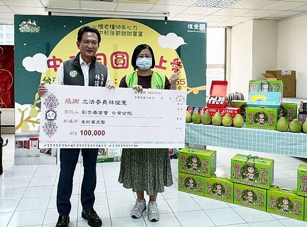 林俊憲表示,台南才挺過風災,地方農漁業受衝擊,文旦農家雖面臨滿地落果的嚴重災損;但堅韌的愛心卻未曾退縮。11年來支持創世基金會的「汽球彥文旦果園」,在風災中遭重創,卻依然無償捐出 600斤麻豆老欉文旦做公益,為創世注入了一股暖流。汽球彥果農李明彥強調,創世已經照顧植物人39年,而幫助台南的植物人朋友已成為使命,是一份值得堅守的承諾,土地銀行東台南分行、台南市記帳士公會、尚沃企業等單位也加入愛心行列,陸續認助。