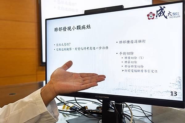對於需要手術的病患,胸腔外科醫師會依個別狀況與病灶位置,提供不同手術方式。吳晨宇醫師說明,針對小顆病灶,肺節切除術需要較精細的手術技巧,但相較肺葉切除術可保留較多肺功能。成大醫院近年成立智能複合式手術室,能在麻醉後定位病灶再作切除,手術更為精準,也免除病患在清醒狀態執行定位的疼痛與不適。成大醫院亦致力發展微創手術,幾乎所有病患都可透過單孔胸腔鏡完成手術,相較傳統開胸或多孔胸腔鏡手術,傷口更小且術後恢復更快。