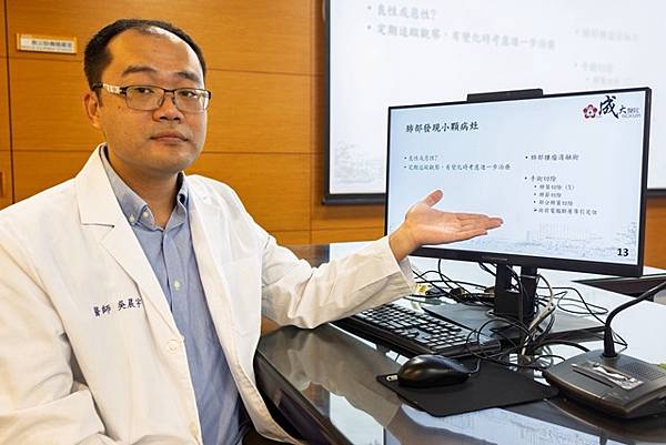 【柿子日報記者李玲/台南報導】43歲陳先生,本身無抽菸、喝酒等不良嗜好,因心律不整多次於醫院就診,曾進行X光檢查均無異常,轉診至成大醫院執行心臟燒灼手術時,電腦斷層檢查意外發現左下肺部一顆1.7公分的病灶。經胸腔外科評估後,陳先生接受胸腔鏡輔助左下肺節切除手術,病理報告確診為肺腺癌第1期。