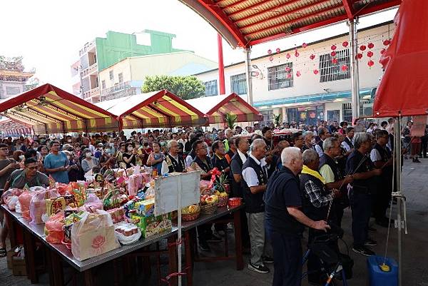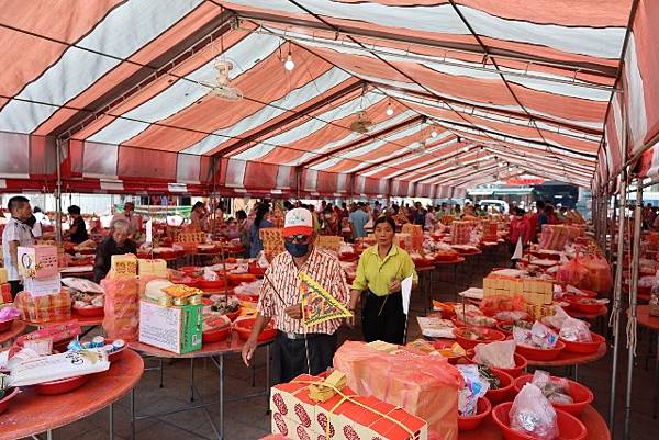 【柿子日報記者李玲/台南報導】保生大帝台灣開基祖廟學甲慈濟宮,4日舉辦中元普度大拜拜,許多虔誠信徒全力張羅參與拜拜的貢品,董監視表示,包括三會首及中角附近民眾席開765桌,還有28隻豬、10噸白米車4台,大批的金銀紙,場面豐富盛大。
