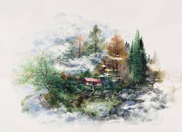 陳俊華以水彩捕捉千山萬水,奇妙地掌握了「水」的精神。他的作品除了寫實的細膩之外,散發著沈澱後的清明、層層遞進的寧靜、悠揚致遠,像一首緩緩傾吐的詩在向觀者揮手。空氣中的溼氣、透明感、水或風的流動、色光的律動等在畫面裡交融,光影因水而閃爍,景物因水而有閃閃發光的生命力。在藝術家柔軟而精準的筆觸下,觀者得以暫時忘卻世俗喧囂,走進藝術家再創的自然風景,便能一同緩緩呼吸、感受在日常中的波光樹影,如此簡單平凡的影像,卻能引發豐富的奇思妙想。