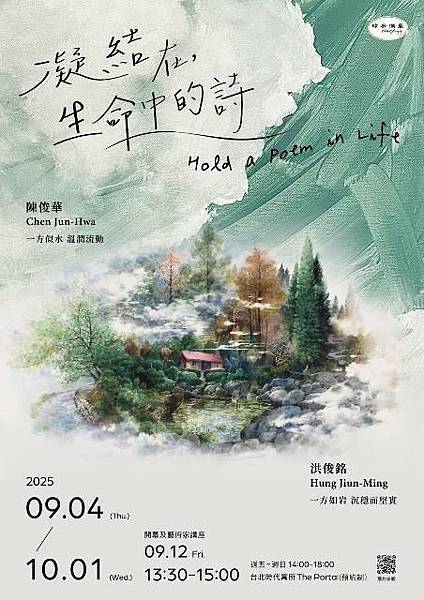 我們竭誠歡迎您走進《凝結在生命中的詩》展,隨著水的光影漂流、或隨著山的靜默安然,在陳俊華與洪俊銘的作品之中,閱讀出一首飽含自己生命體會的美感之詩。