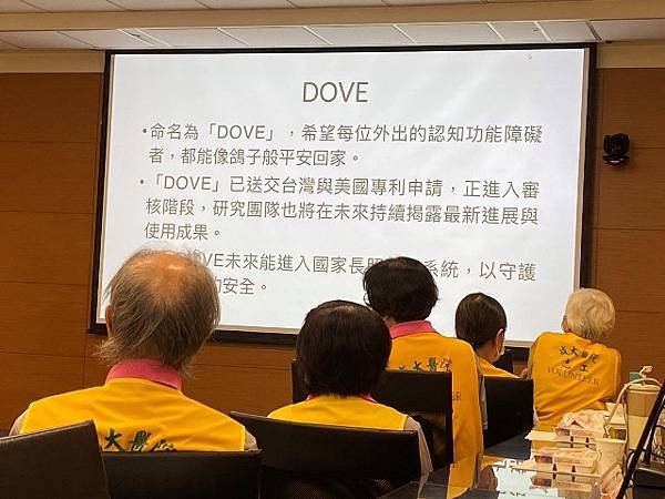 白明奇主任表示,這項發明命名為「DOVE」,希望每位外出的認知功能障礙者,都能像鴿子般平安回家。「DOVE」已送交台灣與美國專利申請,正進入審核階段,研究團隊也將在未來持續揭露最新進展與使用成果。期待DOVE未來能進入國家長照服務系統,以守護失智者行的安全。