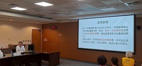 白明奇主任進一步說明,從1,094筆個案資料的初步分析中,發現幾項與走失相關的重要指標,包括:男性、阿茲海默症患者以及認知功能較差者,發生迷路或走失的風險明顯上升;同時也發現,即便是輕度認知障礙者,也可能出現迷路與走失情況,並造成傷害,值得社會大眾關注。
