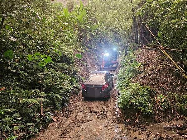 【柿子日報記者李玲/台南報導】114年9月14日下午3時41分,許男駕車載妻子欲前往白 『河區著名景點「萬里長城」遊玩,卻因過度依賴導航誤入大林里杭內山區小徑。適逢近期豪雨不斷,山路泥濘難行,車輛不慎陷 『入其中動彈不得。夫妻倆受困險境,擔心入夜後情況更加危險, 『遂焦急報警求助。