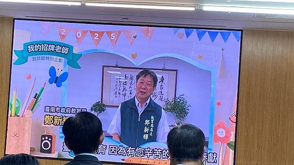 【柿子日報記者李玲/台南報導】為感念教師平日的無私奉獻,並向教師表達誠摯謝意,台南市政府教育局於教師節前特別規劃系列活動發佈「2025台南教育之星來透可」系列影片,並於今(22)日舉辦影片首播分享會,由台南市副市長葉澤山代表市長黃偉哲出席,與教育局長鄭新輝偕同家長、教師校長團體代表齊聚一堂,共同向所有老師獻上「教師節快樂」的祝福。