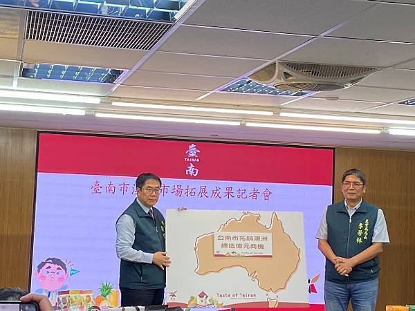 台南市長黃偉哲今(23)日於永華市政中心出席「澳洲食品展暨拓銷成果發布記者會」,他表示這次台南首次組團前往澳洲參展,不僅在布里斯本、黃金海岸及雪梨展現台南農特產的魅力,更成功打開市場通路,創造破億元訂單佳績。黃偉哲指出,雖然台南部分農產品因氣候影響產量減少,但展會成果顯示國際市場需求強勁,未來若遇盛產,將不必再擔心缺乏銷售管道。