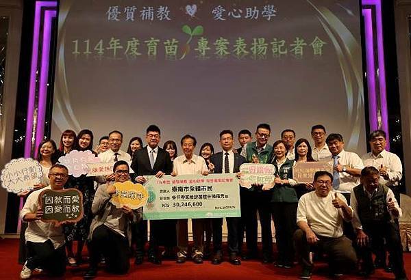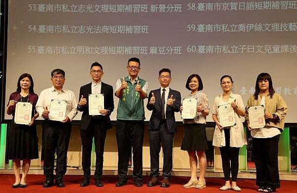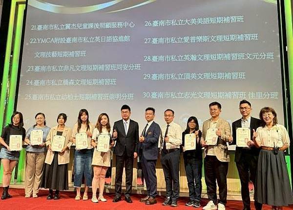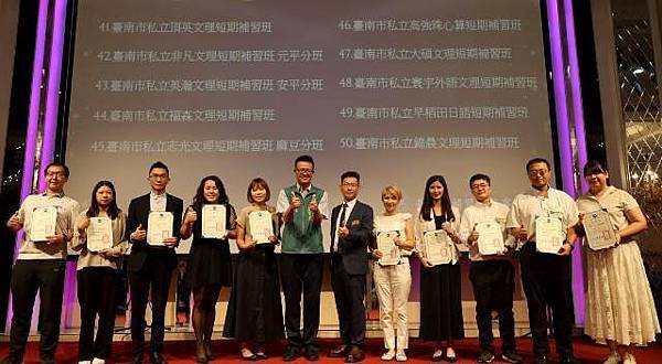 【柿子日報記者李玲/台南報導】臺南市補習教育事業協會28日中午於安平區富霖宴會式場舉辦「優質補教、愛心助學」優良教師頒獎典禮暨育苗專案表揚記者會,經過「初審、複審、決審」的評選過程最後選出20位獲獎教師。理事長洪嘉鴻也表示,今年在臺南市政府教育局、社會局及中華民國補習教育全國總會指導下,育苗專案共有「90間」補習班共襄善舉,提供「1,250個」助學名額,其中學費全免有594名、半價優惠有683名總價值估計超過3千萬元。