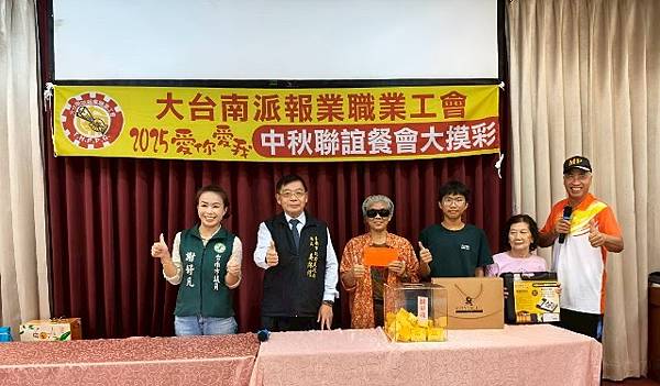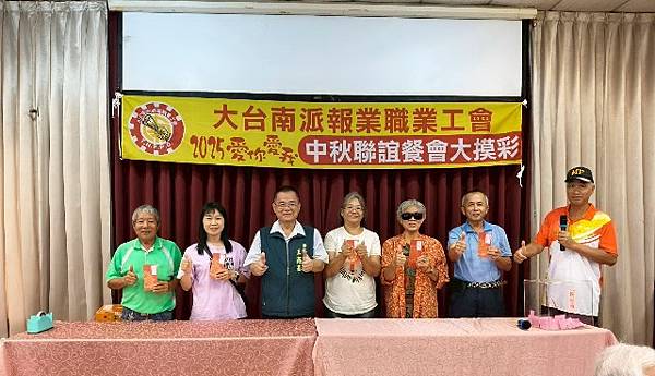 【柿子日報記者林易緒/台南報導】送報生披星戴月,風雨無阻,全年無休!大台南派報業職業工會今天利用中秋節前夕在田媽媽鵝肉美食餐廳,舉辦「2025愛你愛我中秋親子聯誼大摸彩活動,包括立委郭國文、市議員陳昆和、謝舒凡、楊中成、尤榮智、民政局長姜淋煌、勞工局長王鑫基、農業局長李芳林、保育科長朱健明、市場處代理處長林士群、前台南市副市長顏純左、國民黨台南市黨部書記長洪菽珮等,為200多位大台南地區的送報人員加油打氣,場面熱烈溫馨,提前歡度中秋佳節。