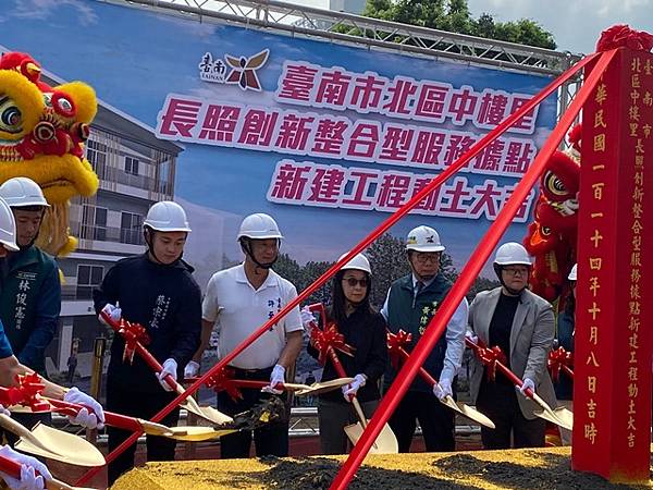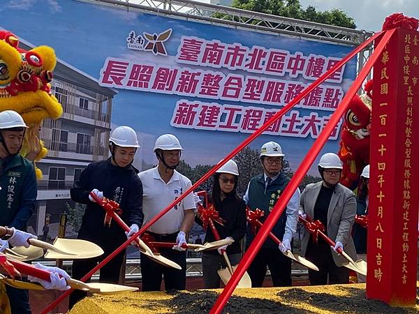 【柿子日報記者李玲/台南報導】臺南市政府為因應超高齡社會的挑戰,積極向中央爭取資源,設置長照創新整合型服務據點,並於今(8)日舉行新建動土儀式。由臺南市長黃偉哲偕同林俊憲立法委員代表、陳亭妃立法委員代表,國有財產署黃莉莉分署長、衛生福利部長照司白珊綺簡任技正,市議員邱莉莉議長代表、陳怡珍議員、沈震東議員、蔡宗豪議員、許至椿議員及周嘉偉韋議員代表、林燕祝議員代表及北區區長潘寶淑出席,共同見證這一重要時刻。市府計畫將透過該設施的建設,進一步完善市區的長期照顧體系,提供更全面的照護服務,實現長者「在地安老」的願景。
