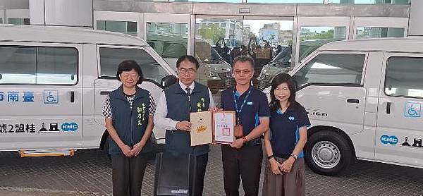 【柿子日報記者李玲/台南報導】桂盟關懷公益基金捐贈2輛復康巴士予台南市政府,今(28)日於永華市政中心舉行捐贈儀式,由集團幕僚長鍾景生代表捐贈,市長黃偉哲親自出席受贈,並感謝桂盟基金長年投入公益、用實際行動守護弱勢族群的交通權益。