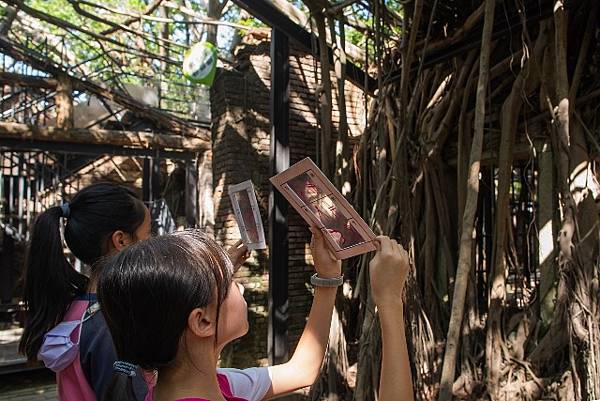 在長榮大學書畫藝術學系主任江柏萱帶領下,大光與成功國小學童透過「字影尋蹤」的書法遊戲,在盤錯古榕間尋找靈感,辨識出「大、自、然、安、平、樹、屋」等字形,並結合葉拓創作,體驗從自然紋理轉化為筆墨之美。