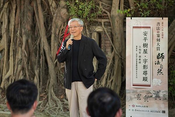 安平樹屋與老榕共生、景觀獨特;安平亦是國寶級書法家朱玖瑩晚年長居之地。此次活動帶領國小學童走出校園,引領他們領略府城書法大家朱玖瑩的藝術生命及百年老榕極具生命力的線條,讓藝術教育結合文化地景及自然觀察,落實跨界多元的教育理念。書法家黃宗義老師興之所致,當場揮毫本屆主題「師法自然」,送上對台積電書篆大賞與安平樹屋的鼓勵與祝福。