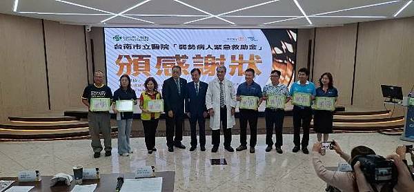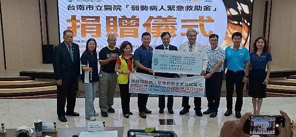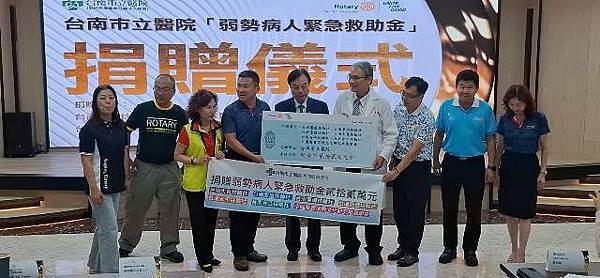 【柿子日報記者李玲/台南報導】為減輕經濟弱勢民眾的醫療負擔,台南大員扶輪社、台南鳳凰扶輪社、台南東南扶輪社、台南億載扶輪社、台南安平扶輪社、台南台江扶輪社以及中國廣豐宗教文化研究推廣學會,匯集社友愛心捐贈22萬元「弱勢病人緊急救助金」予台南市立醫院,期望有需要的民眾在艱難時刻都能獲得即時協助與社會的溫暖支持。