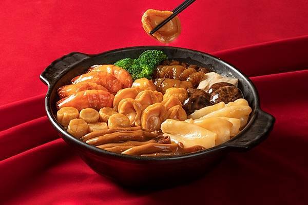 若選擇在家圍爐,彩豐樓亦推出「富貴年菜外帶組」供民眾預訂,人氣第一的「港式盆菜—盆滿缽滿」每盅NT$6,180元(附容器),匯集鵝掌、蔥燒烏參、大白蝦、鮑魚、花菇、花膠、雞腿肉、花枝丸、瑤柱等珍貴食材,以層層堆疊展現盆菜澎湃氣勢;另一款高人氣的「冠軍佛跳牆」每盅NT$4,980元(附湯盅、冷凍出貨),以上湯慢火熬煮8小時,湯頭濃郁醇厚、富含膠質,象徵幸福滿溢。另有「燻滷太爺雞」每份NT$1,200元,以滷製與茶燻工法呈現皮滑肉嫩的風味;「頭抽焗大蝦」每份NT$980金黃酥脆,蒜香與醬香交織,鮮甜多汁,寓意增壽福滿門。年菜提領時間為2025年1月27日(小年夜)與1月28日(除夕)12:00–15:00,不提供宅配,數量有限、售完為止,預購專線06-512-1910。